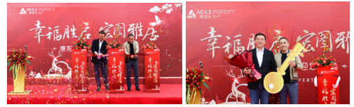 2020年12月15日上午,惠阳雅居乐珑禧花园张灯结彩,热闹非凡,公司购买的该楼盘4、6栋首批410套房交付仪式隆重举行。陈董、财务中心总监朱国强、行政管理中心总监张如萍,雅居乐广州区总裁张海明、粤东事业部总经理夏宇飞出席仪式。